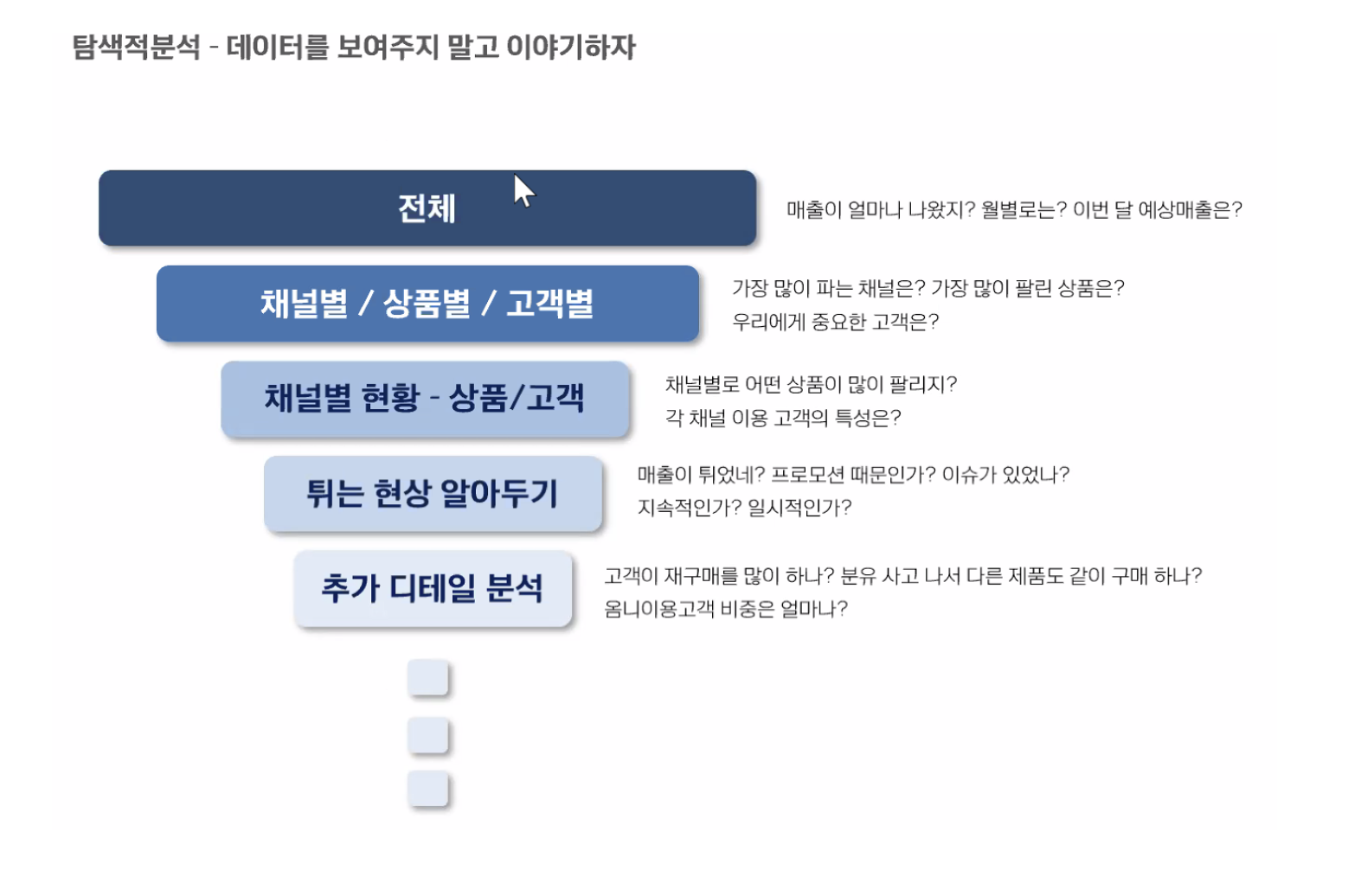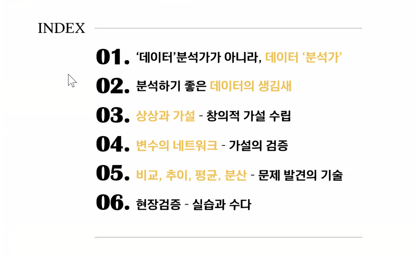 (각자 친숙한 도구가 있지만 여기서는 엑셀로 하고 있다. → 현업 담당자와의 커뮤니케이션 측면에서 엑셀로 하게 된다!!)....엑셀도 못하시는데 파이썬 / R한다면?...와우...