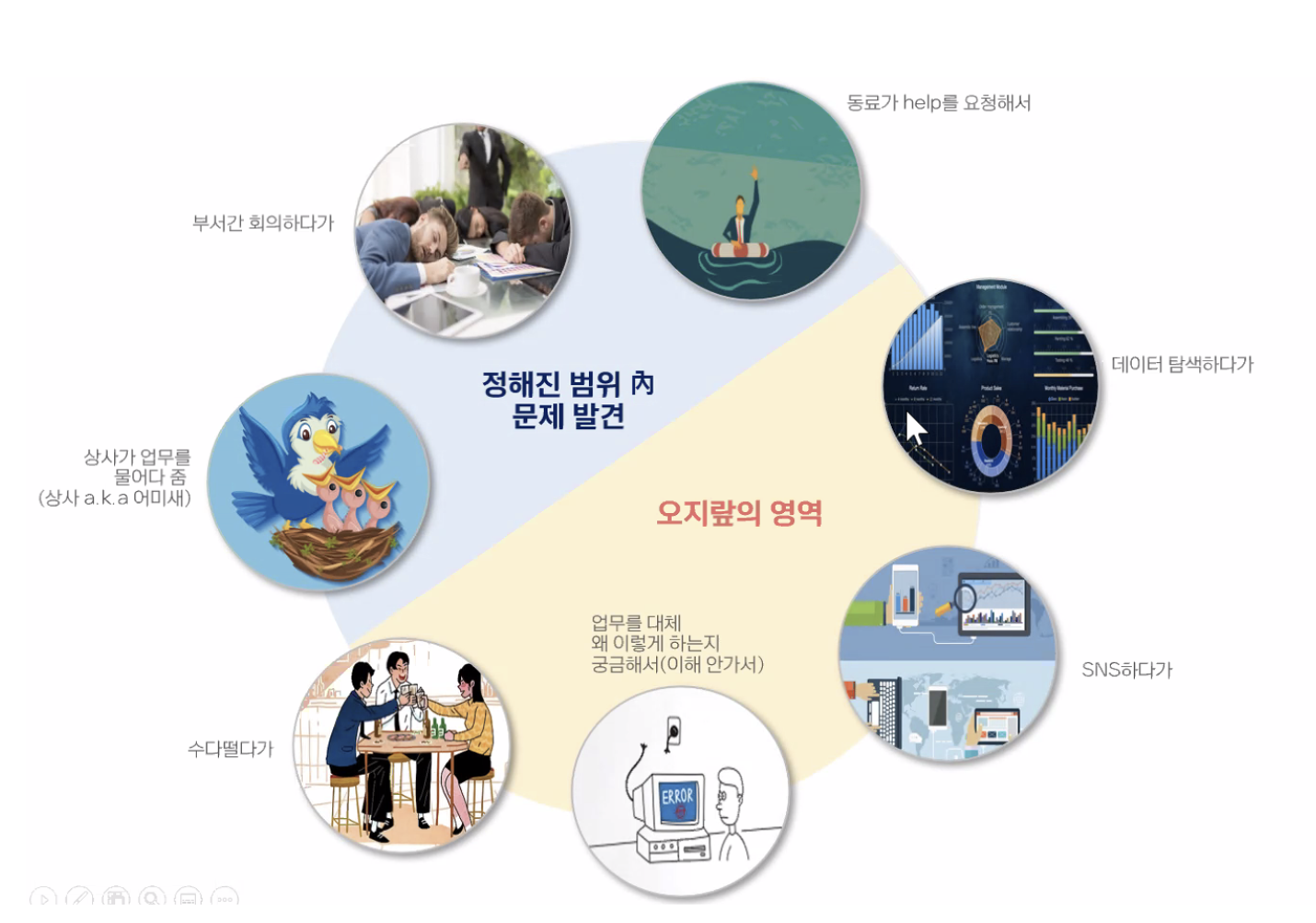 전반적인 비즈니스를 바라봐야하는 것이 차별점이라고 생각이 든다. 데이터 분석은 하나의 일부분일 뿐이다. 데이터 분석가라기 보다는 경영지원실로서 일어나는 현상에 대한 가이드를 주거나 지원을 해주는 느낌/ 해결될 수 있게끔 도와주는 파트 → 그래서 비즈니스에 대한 의사결정을 지원하고 → 이를 위한 지원을 위해 분석을 한다.