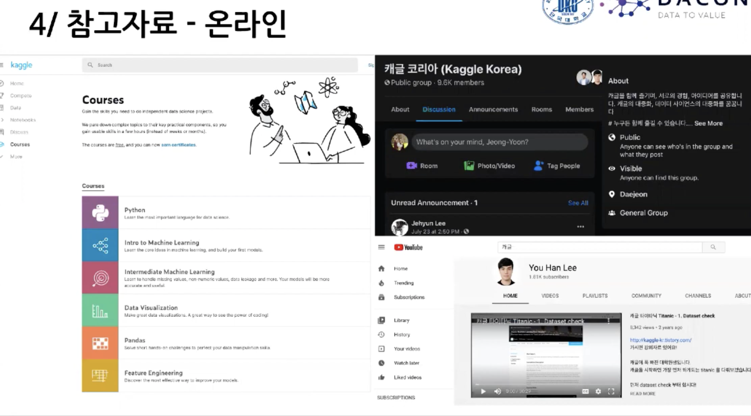 하지만, 난 캐글에 대해서 잘 모르고, YouTube를 보더라도 깊게 보지 못한 감이 없지 않았다.