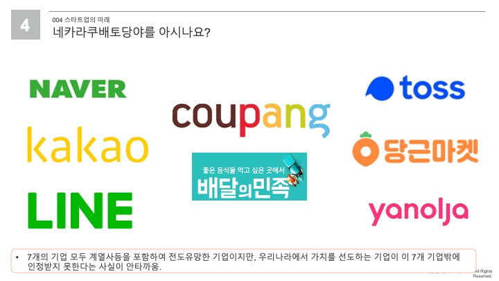 우리나라 유니콘 기업들의 경우, 쿠팡을 제외하곤 크게 인정을 받지 못해 아쉬움이 남음.