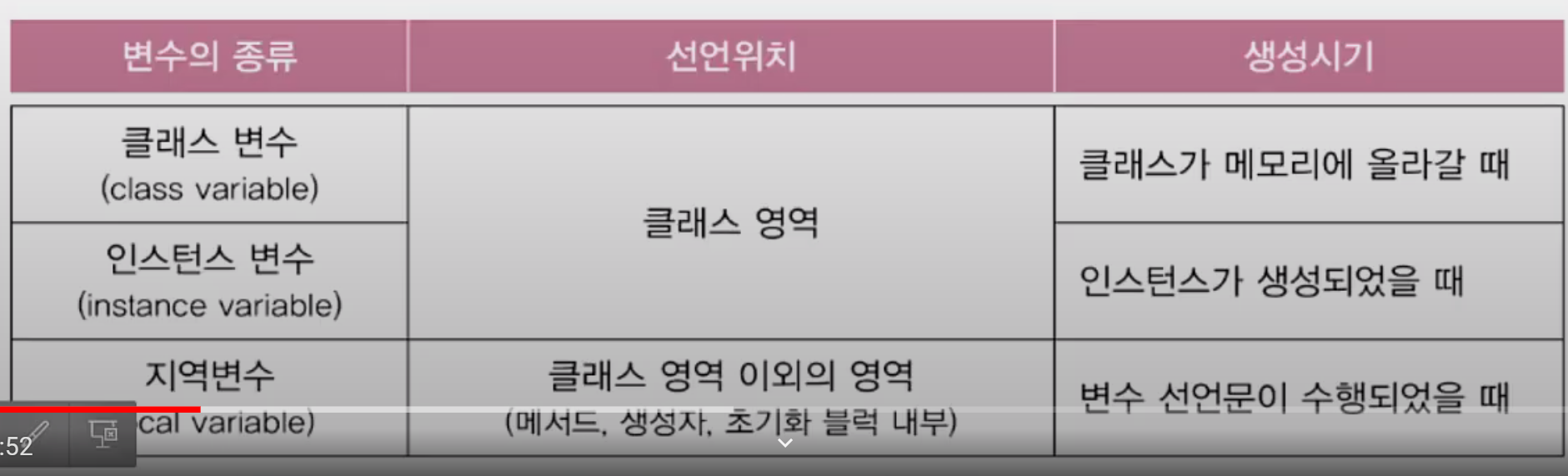 -> 인스턴스 변수가 인스턴스 생성되었을 때(객체가 생성될때) 생성된다는 게 젤 중요!!