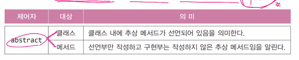 abstract void move(); // 추상 메서드(구현부가 없는 메서드)