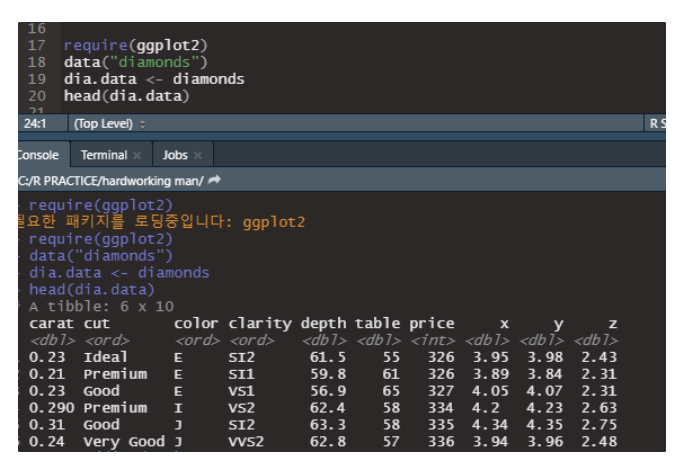 - head(): 시작 레코드 6개 보여준다. 개수 지정할 수 있다.