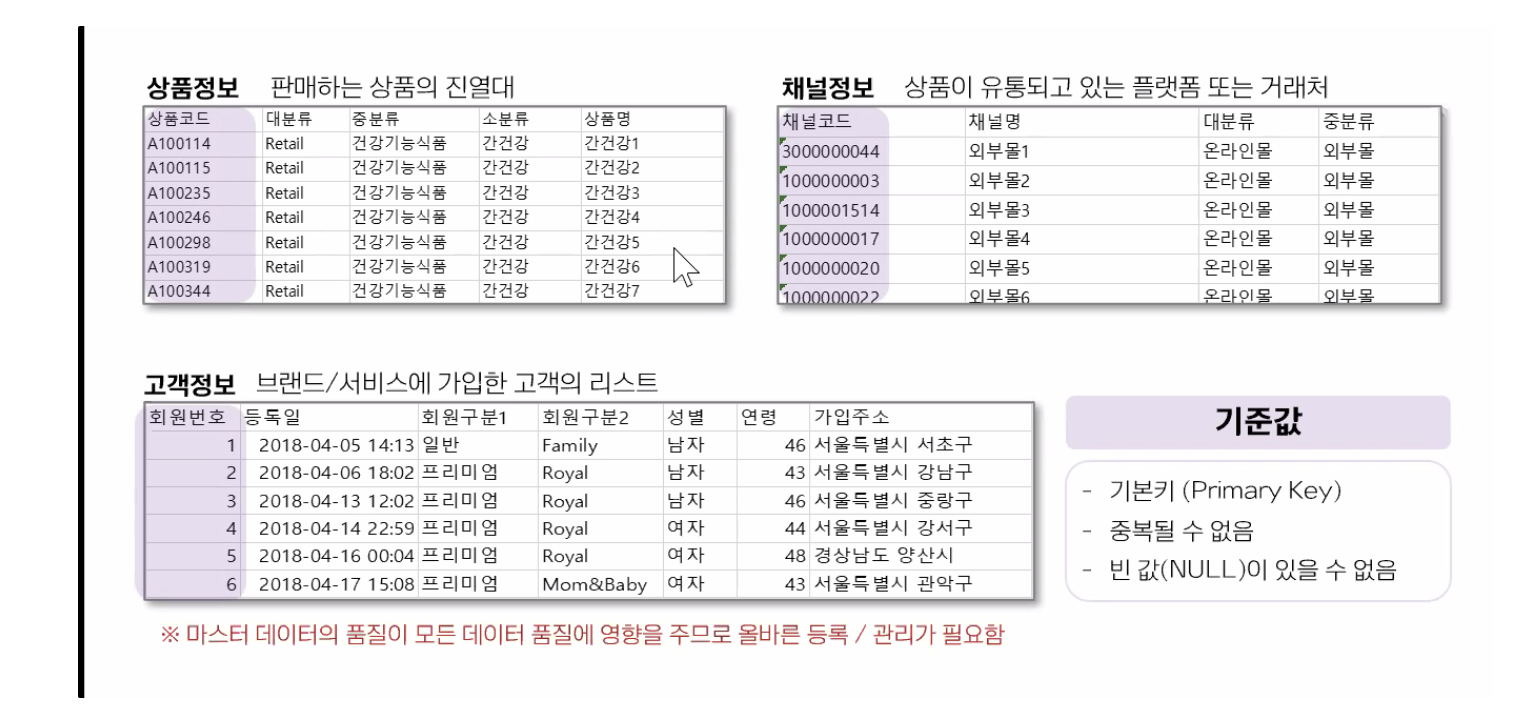 아주 중요한 마스터 데이터 - 상품/채널/고객/서비스/조직/직원/계좌 정보