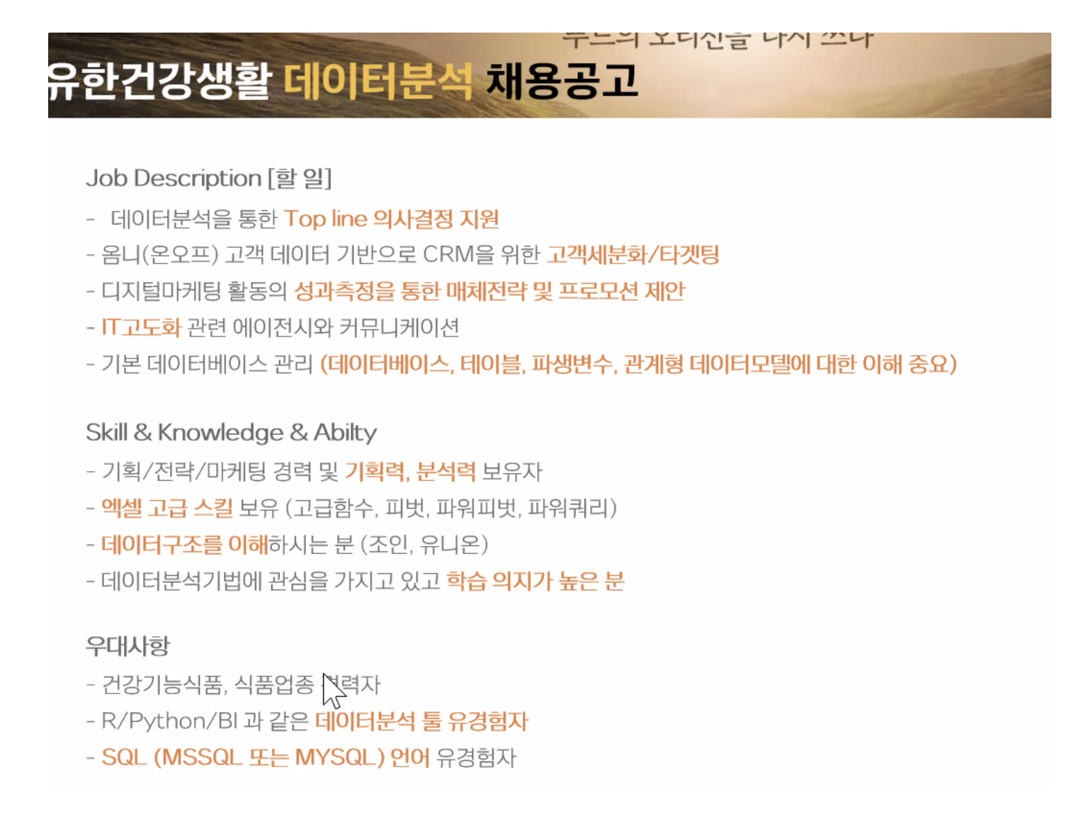 기획/전략/마케팅 경력 및 기획력, 분석력 보유자 엑셀 고급 스킬 → 매우 중요하다 건강기능 식품, 식품 업종 경력자