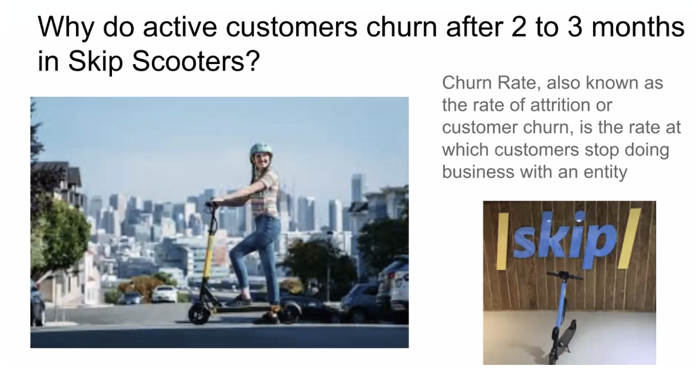 2~3달 쓴사람들이 없어진다. (turn rate) → survey → 직접 사는 게 낫겟다!! → 연습하고 사는게 낫겠다. → 샌프란시스코에서 스쿠터타면 된다!!