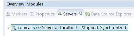Project Explorer 뷰에서 보면, Servers 폴더를 클릭하면 Servers 프로젝트 아래에 톰캣 실행 환경 이름으로 폴더가 생성되어 있습니다.