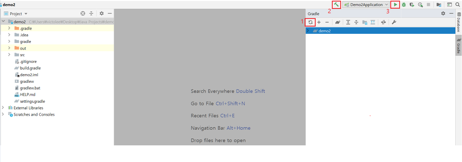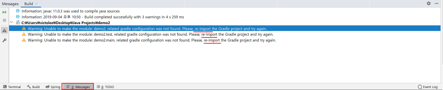 re-import 메시지를 확인했으면, 우측의 Gradle 탭 > 우클릭 > Reimport Gradle Project 클릭 합니다.