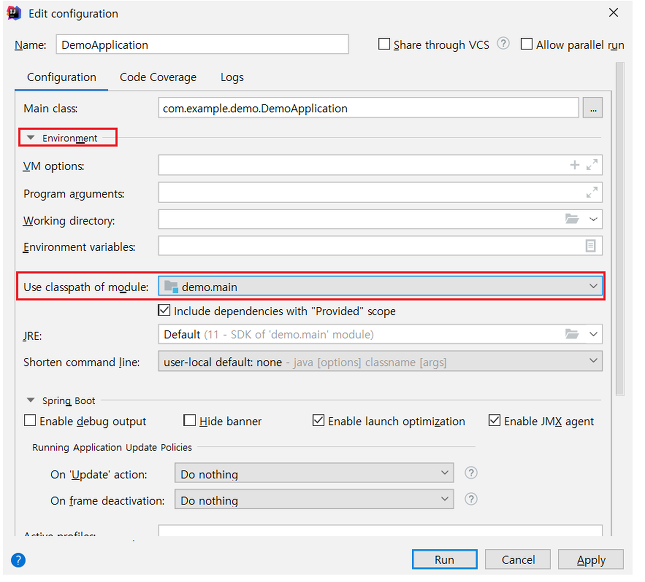 그러면 아래와 같이 Edit Configuration 팝업이 뜨는데요.