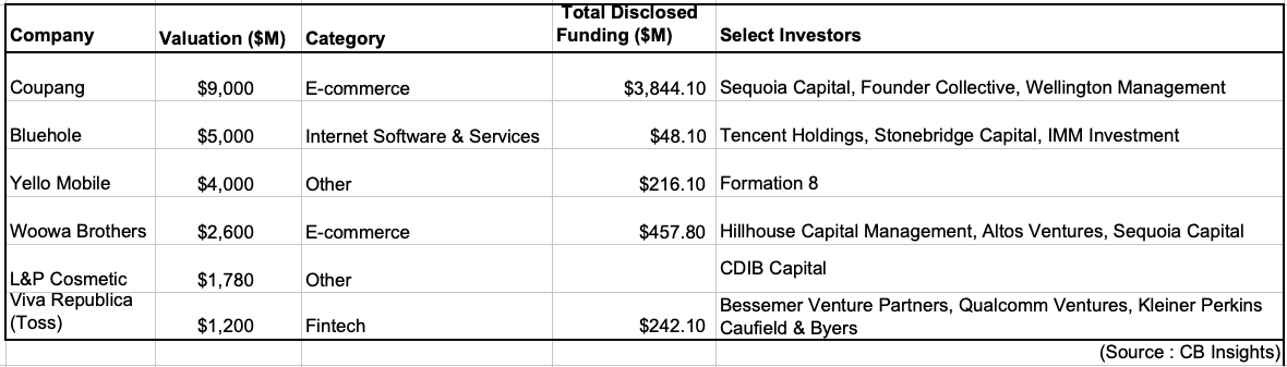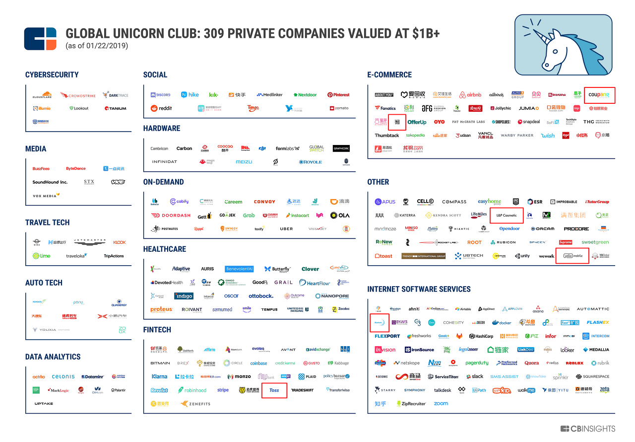 2019 글로벌 유니콘 스타트업 업데이트 : 한국스타트업이 6곳!