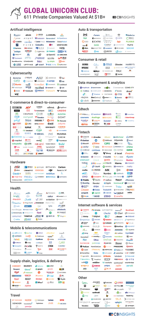 Our market map visualizes the 500+ private companies with billion-dollar valuations, across artificial intelligence, e-commerce, fintech, and more.