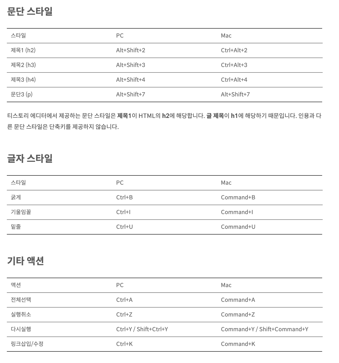 티스토리 글쓰기 가이드 : 단축키