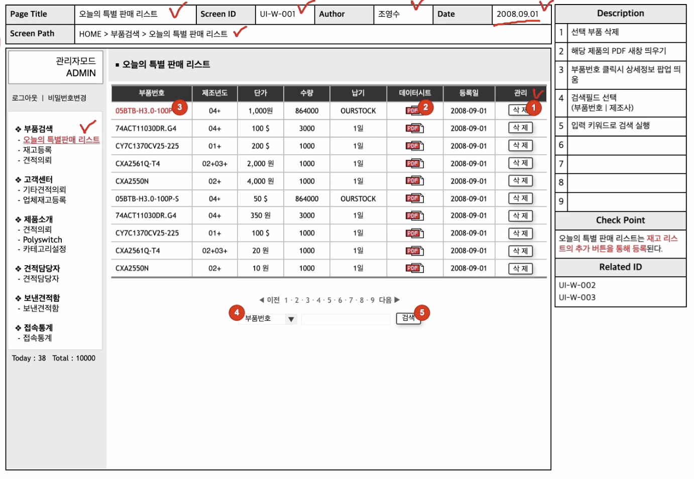 - 화면목록 -> 페이지 변경사항등을 적어주도록 한다!