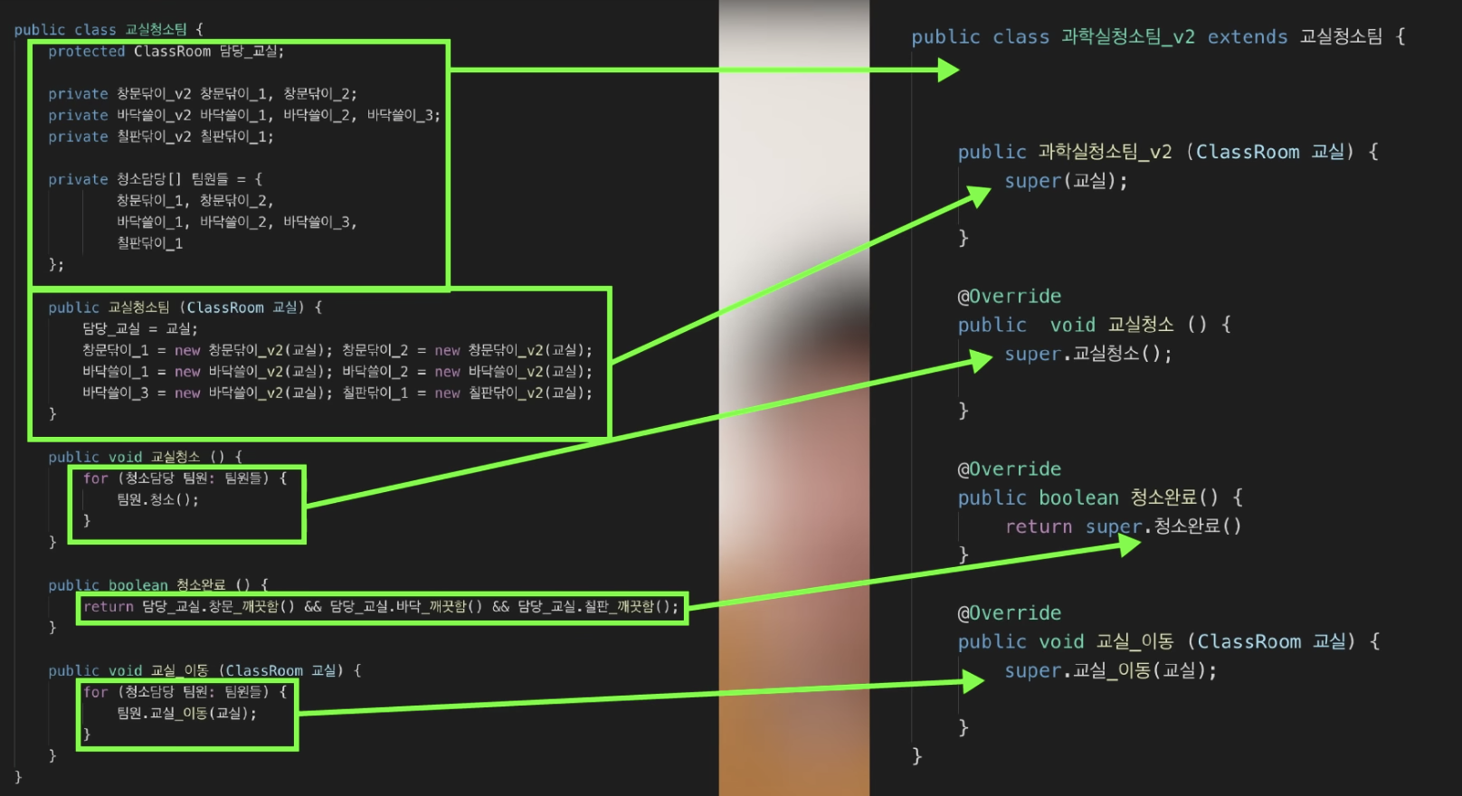 과학실 청소팀은 상속시켜서 진행할 수가 있게됨.
