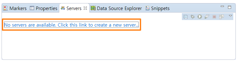 이제는 톰캣서버를 등록해야 합니다. 오른쪽 아래의 서버탭에서 No server are .. 부분을 클릭합니다.