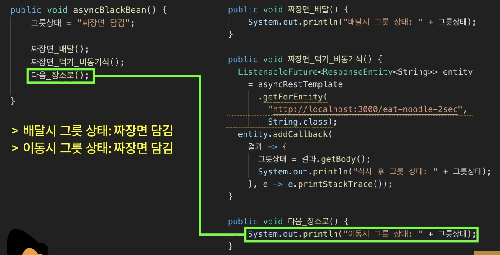 멀티태스킹이 구현된다고 있다. -> 식사완료하면 callback 이라고 한다