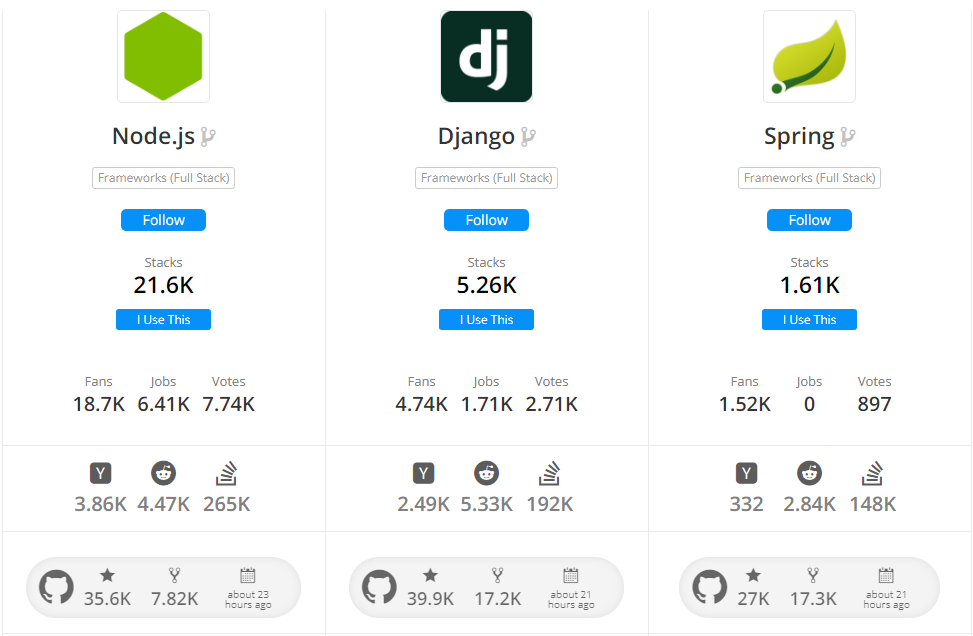 StackShare Node vs Django vs Spring